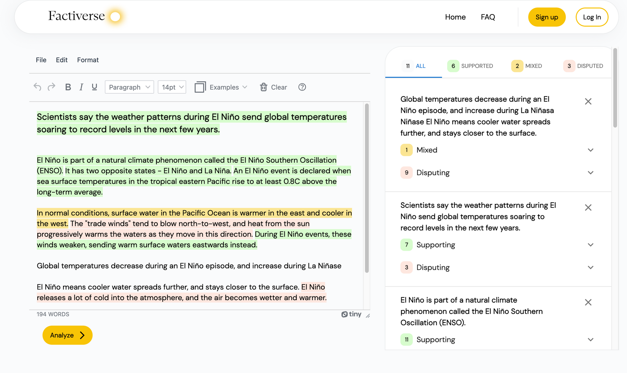 Factiverse AI Editor was made to assist anyone who values credibility and wants to avoid mistakes or hallucinations in their texts.