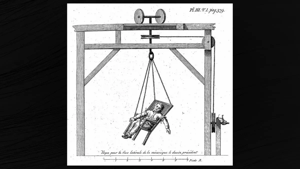 In the 19th century, psychiatric patients in the U.K. and Europe were sometimes treated for mania using a rotating swing or chair, designed to calm them through induced vertigo and exhaustion. This method, developed by figures like English physician Joseph Mason Cox and American physician Benjamin Rush, was believed to have soothing effects but often caused nausea, vomiting, and other adverse reactions. Though it fell out of favor over time, modern researchers have revisited the technique for its potential connection between the vestibular system and emotional regulation.