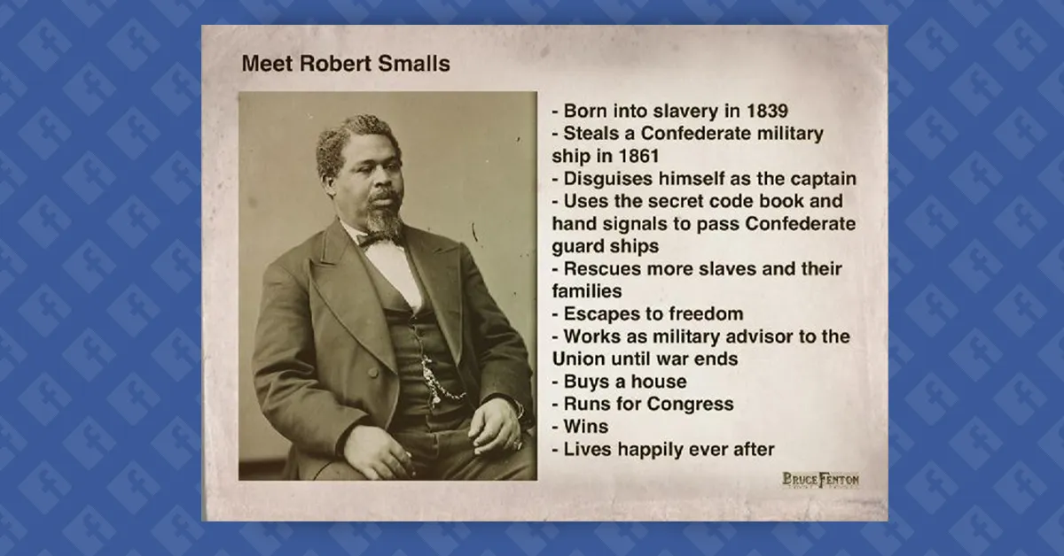 Robert Smalls was born into slavery in South Carolina in 1839 and became a skilled pilot on the Confederate steamship Planter. In May 1862, he commandeered the ship with his family and other enslaved people aboard, navigated past Confederate checkpoints by impersonating the white captain, and surrendered it to the Union blockade along with valuable artillery. He became a war hero and celebrity, later serving five terms in the U.S. House of Representatives during Reconstruction before Jim Crow laws rolled back Black political power.