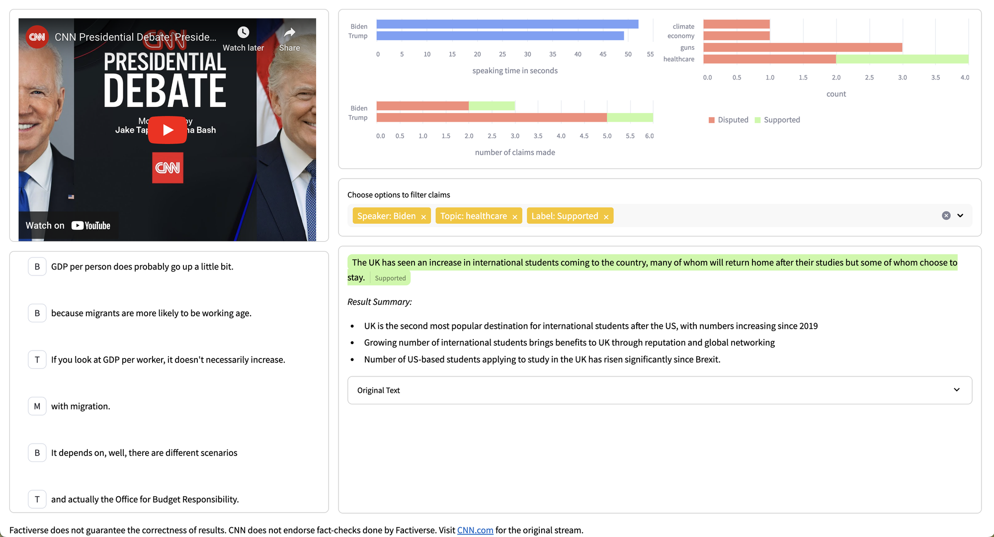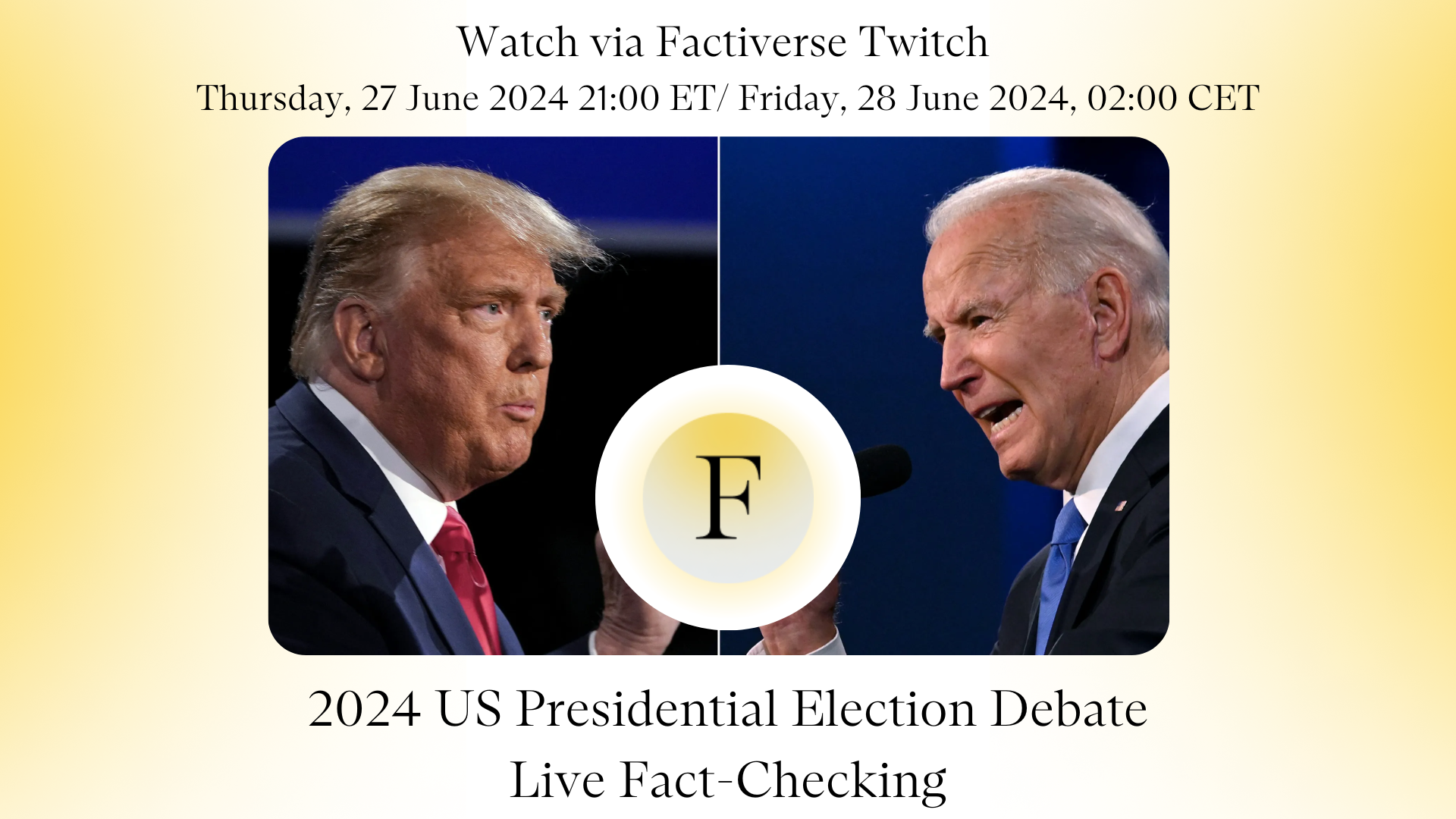 Factiverse is excited to invite you to a groundbreaking live fact-checking session as we leverage our cutting-edge software to analyse the first US presidential debate of 2024 between Donald Trump and Joe Biden!
