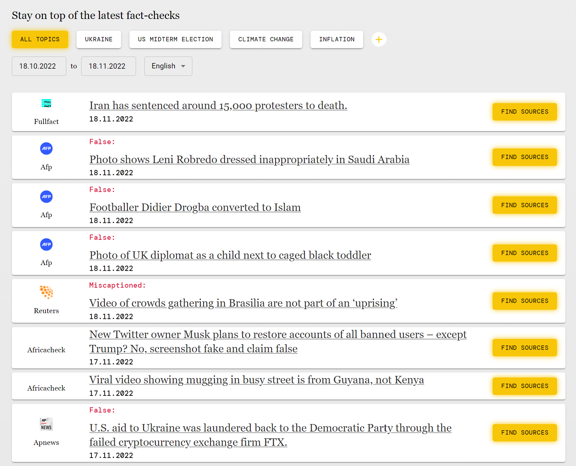 Every hour we gather fact-checks from the whole world in 40 different languages. Our goal is to make sure you never miss out on important information, which is why we are soon launching a service where you can monitor the latest false news and fact-check yourself!
